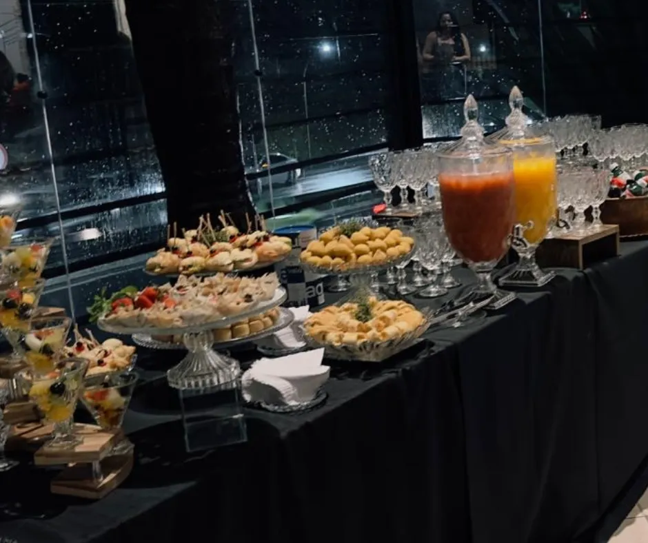 Pequenas porções – Se for um evento que não oferece lugar para todos se sentarem e que foi pensado para que as pessoas comam e interajam, pode fazer o que quiser e até ter música enquanto se serve.