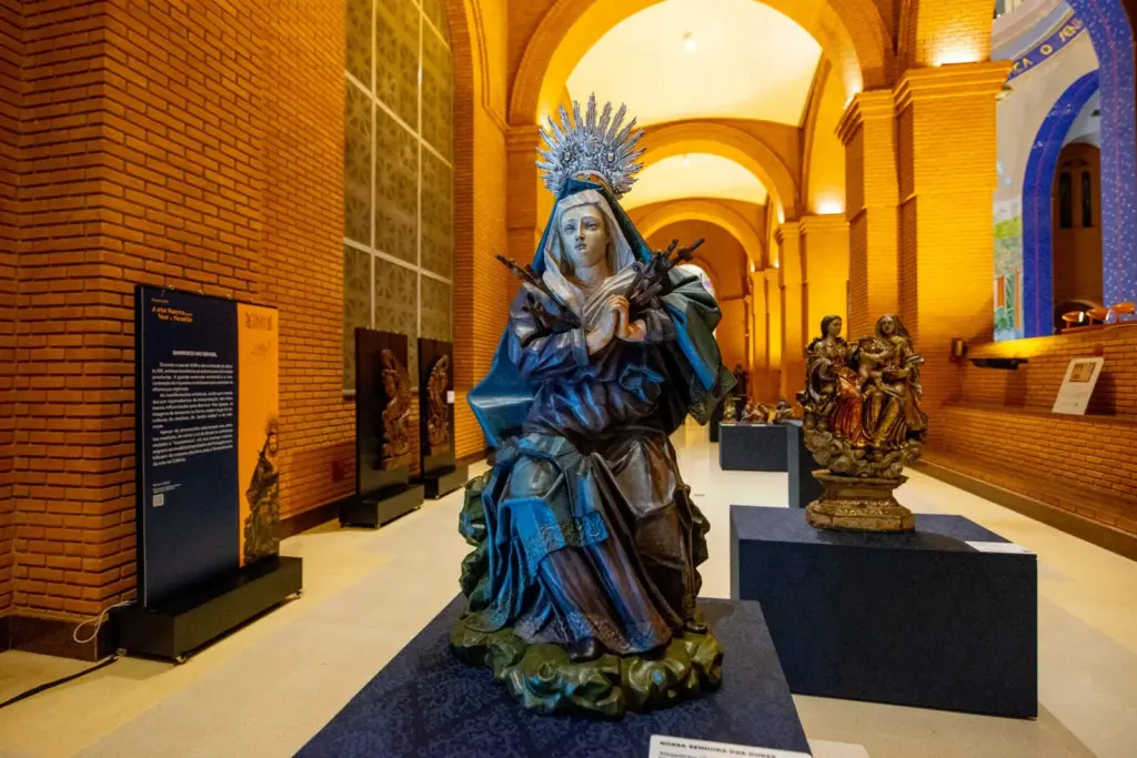 Um dos grandes destaques da exposição é a possibilidade de tocar nas obras. São 21 réplicas fiéis de esculturas sacras do acervo do Museu, produzidas com tecnologia de escaneamento 3D e impressão em ABS com policromia manual. Essa técnica preserva os detalhes originais e permite uma vivência tátil única.