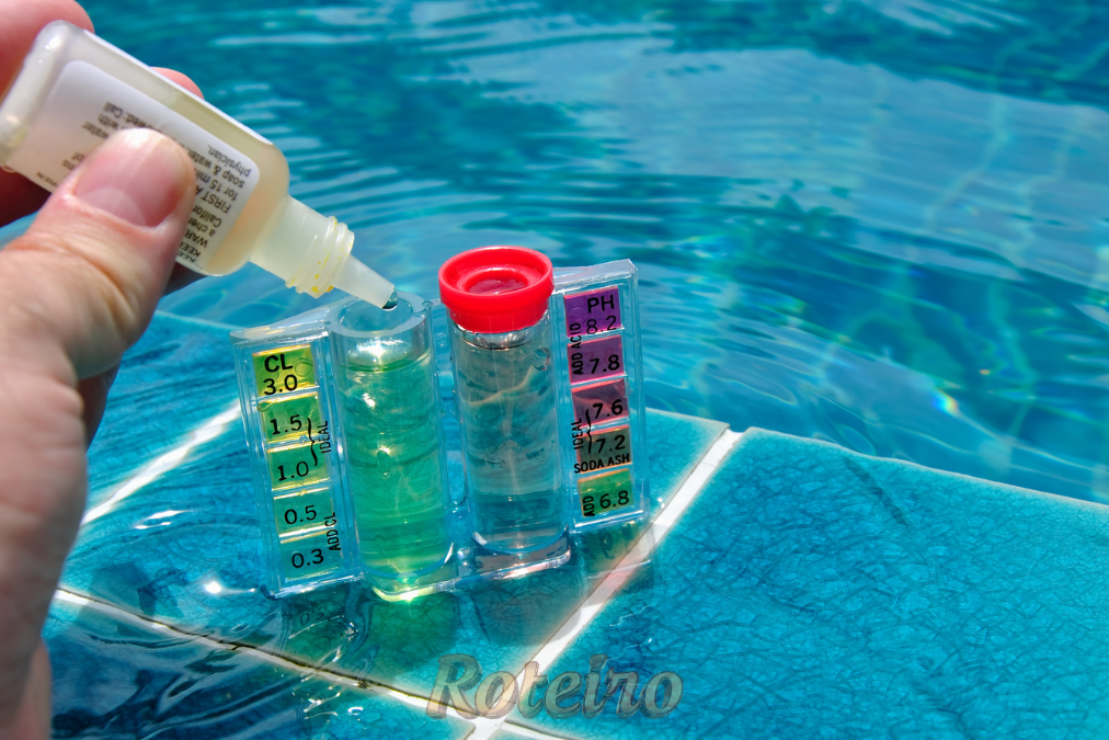 O cloro elimina bactérias, vírus e algas. O nível ideal é entre 1 e 3 ppm.