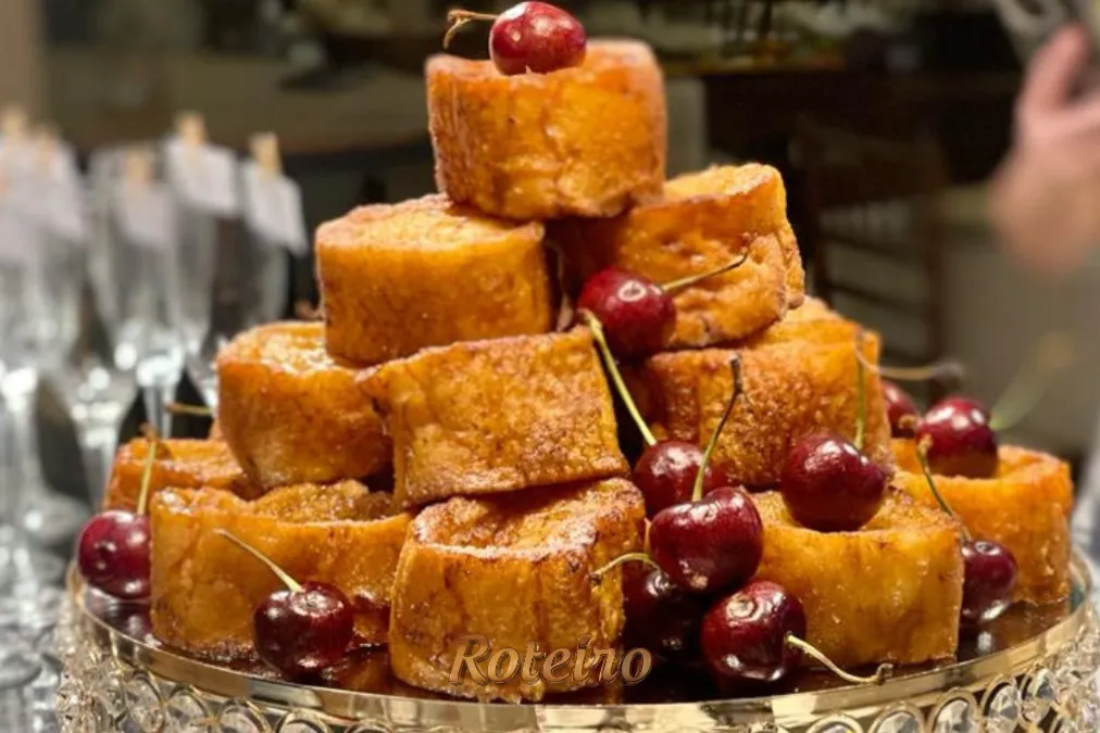 Para encerrar a noite: café, tortellini in brodo (cura da bebedeira e aconchego quentinho, servido em xícaras de chá) e rabanadas — infalíveis para o Grand Finale.