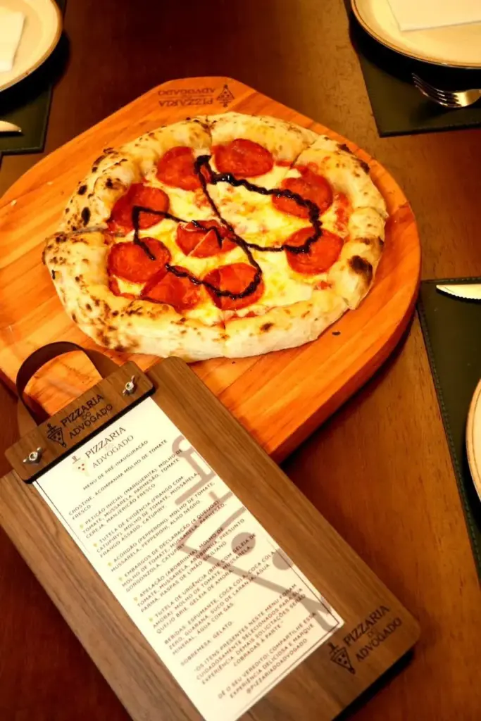 Durante o evento, os convidados puderam experimentar um cardápio exclusivo e criativo. Cada pizza recebeu o nome de um termo jurídico, como “Habeas Bacon”, “Mandado de Margherita” e “Jurisprudência de Calabresa”, trazendo humor e personalidade à experiência.